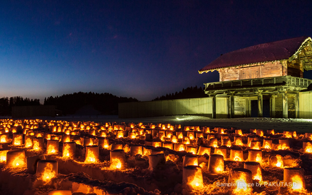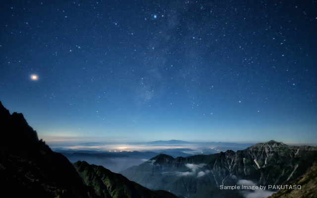 スライダー使用素材: 夜景、 夜桜、 竹灯籠、 天の川、 払田柵、 仙丈ヶ岳